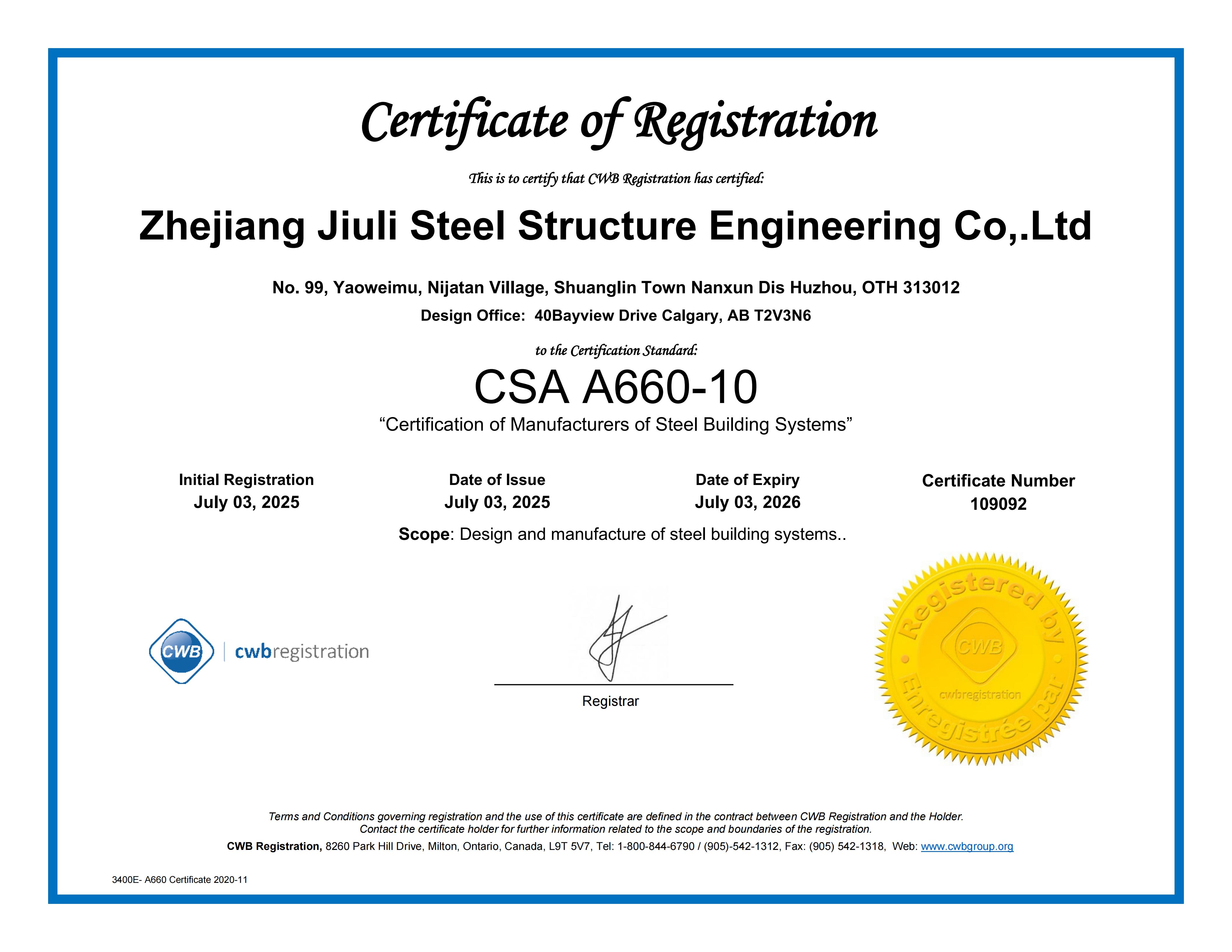公司建有完善的質(zhì)保體系,通過(guò)了IS09001:2015 質(zhì)保體系的認(rèn)證。擁有建設(shè)部頒發(fā)的建筑工程施工總承包貳級(jí)、鋼結(jié)構(gòu)專(zhuān)業(yè)承包壹級(jí)資質(zhì)、制造特級(jí)資質(zhì)。專(zhuān)業(yè)承接各類(lèi)工業(yè)與民用工程的建設(shè),鋼結(jié)構(gòu)的設(shè)計(jì)、制造和安裝。公司立足國(guó)內(nèi)市場(chǎng),目前已在全國(guó)建立多個(gè)營(yíng)銷(xiāo)辦事處,逐步形成了輻射全國(guó)的營(yíng)銷(xiāo)網(wǎng)絡(luò),并積極參與國(guó)際競(jìng)爭(zhēng),公司擁有加拿大焊接協(xié)會(huì)資格論證的加拿大 CWB 證書(shū),美標(biāo) AISC 證書(shū),歐標(biāo)EN1090和IS03834 證書(shū),可承接來(lái)自歐美、澳洲等有特殊要求鋼構(gòu)件的出口加工,已成功地在非洲馬達(dá)加斯加國(guó)及博茨瓦納設(shè)立了分公司久立鋼構(gòu)是湖州地區(qū)率先進(jìn)入國(guó)際市場(chǎng)的建筑企業(yè)之一。